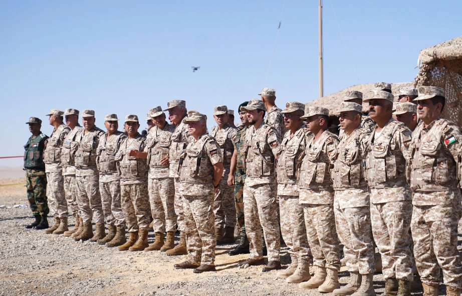 جلالة الملك عبدالله الثاني، القائد الأعلى للقوات المسلحة، وسمو الأمير الحسين بن عبدالله الثاني، ولي العهد، يتابعان مجريات التمرين التعبوي (النور الساطع)، الذي نفذته كتيبة الأمير الحسين بن عبدالله الآلية/1 الملكية، إحدى وحدات المنطقة العسكرية الوسطى