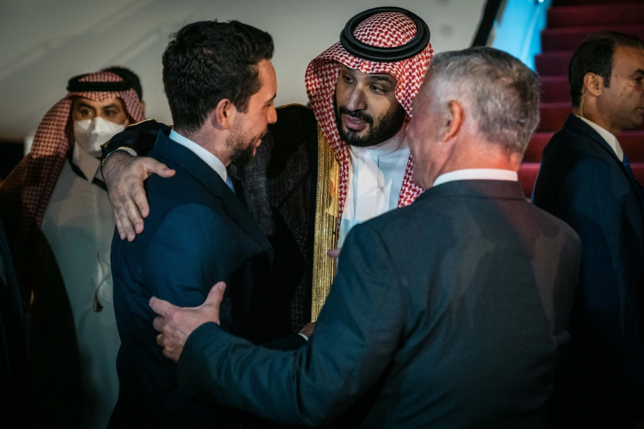 His Majesty King Abdullah II, accompanied by His Royal Highness Crown Prince Al Hussein, meets with Saudi Crown Prince Mohammed bin Salman bin Abdulaziz Al Saud at Al Husseiniya Palace