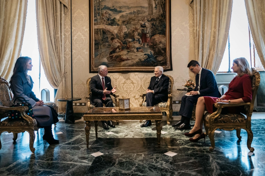 His Majesty King Abdullah II begins a working visit to Italy meeting Italy President Sergio Mattarella
