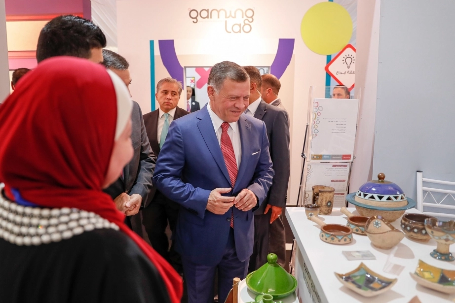 جلالة الملك عبدالله الثاني يتجول في معرض الريادة والإبداع ضمن الحفل السنوي الذي يقيمه صندوق الملك عبدالله الثاني للتنمية