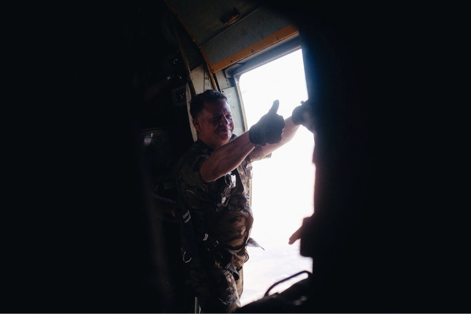 جلالة الملك عبدالله الثاني يبدأ يومه بالمشاركة في تمرين عسكري في العمليات الخاصة كمقفز للمظليين