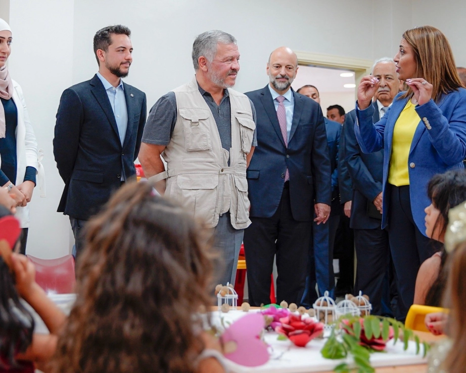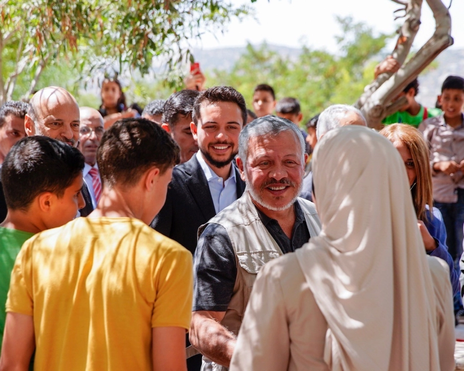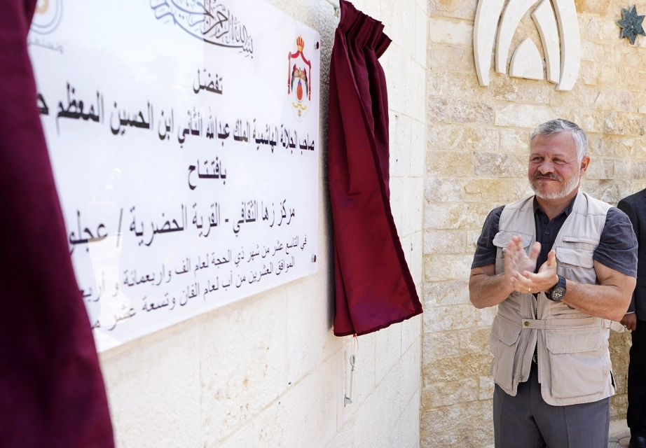 جلالة الملك عبدالله الثاني، يرافقه سمو الأمير الحسين بن عبدالله الثاني ولي العهد، يفتتح مركز زها الثقافي، فرع عجلون