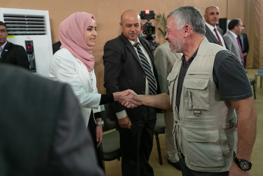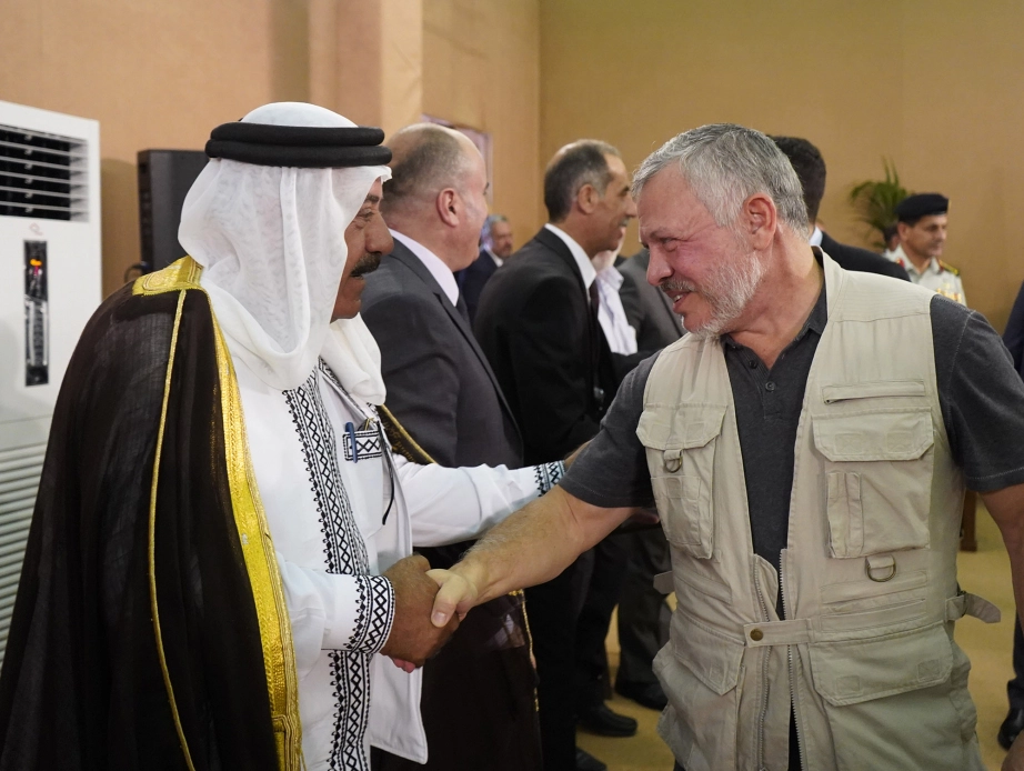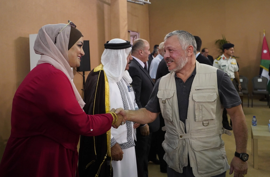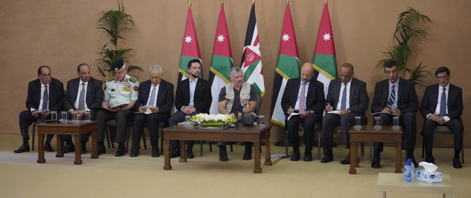 جلالة الملك عبدالله الثاني، يرافقه سمو الأمير الحسين بن عبدالله الثاني ولي العهد، يلتقي رئيس وأعضاء مجلس محافظة عجلون المنتخب ورؤساء البلديات فيها