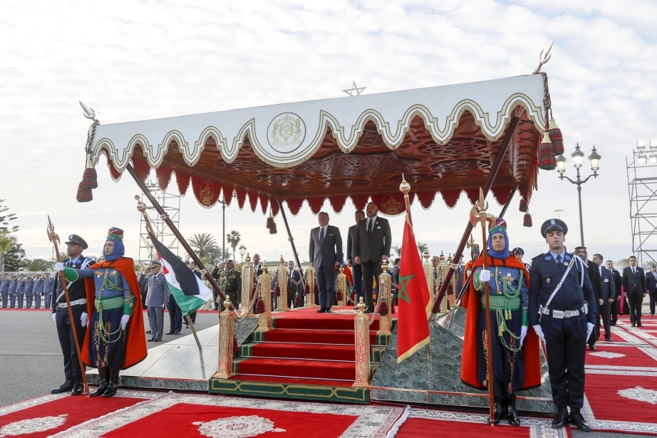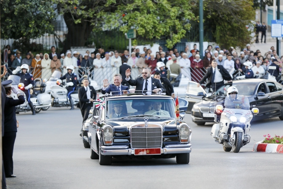 جلالة الملك عبدالله الثاني وجلالة الملك محمد السادس، يتوجهان إلى القصر الملكي في الرباط