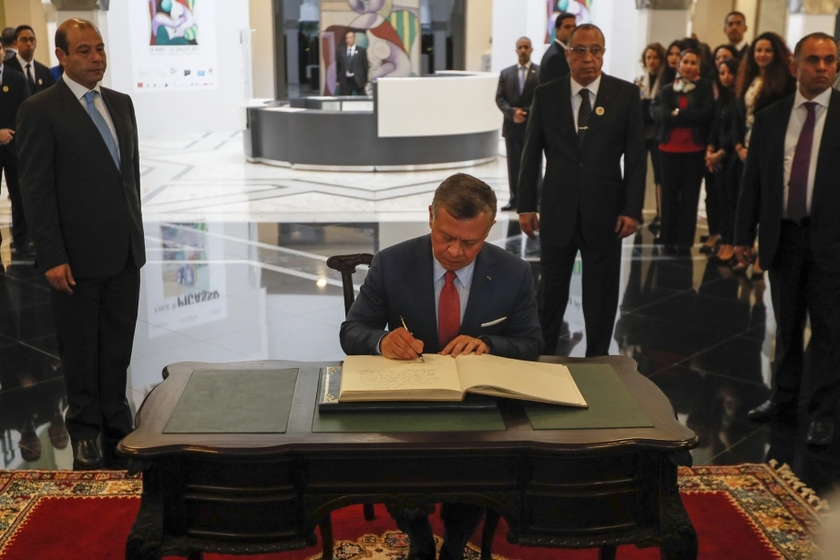 جلالة الملك عبدالله الثاني يدون كلمة في سجل كبار زوار متحف محمد السادس للفن الحديث والمعاصر