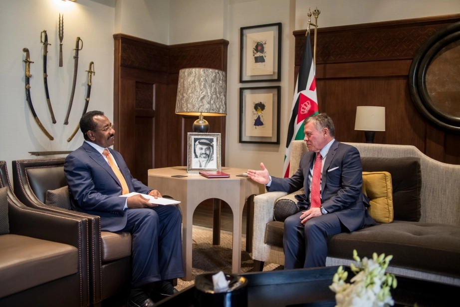 جلالة الملك عبدالله الثاني يستقبل وزير الدولة برئاسة الجمهورية السودانية الفريق طه عثمان الحسين ويتسلم رسالة من الرئيس السوداني عمر حسن البشير