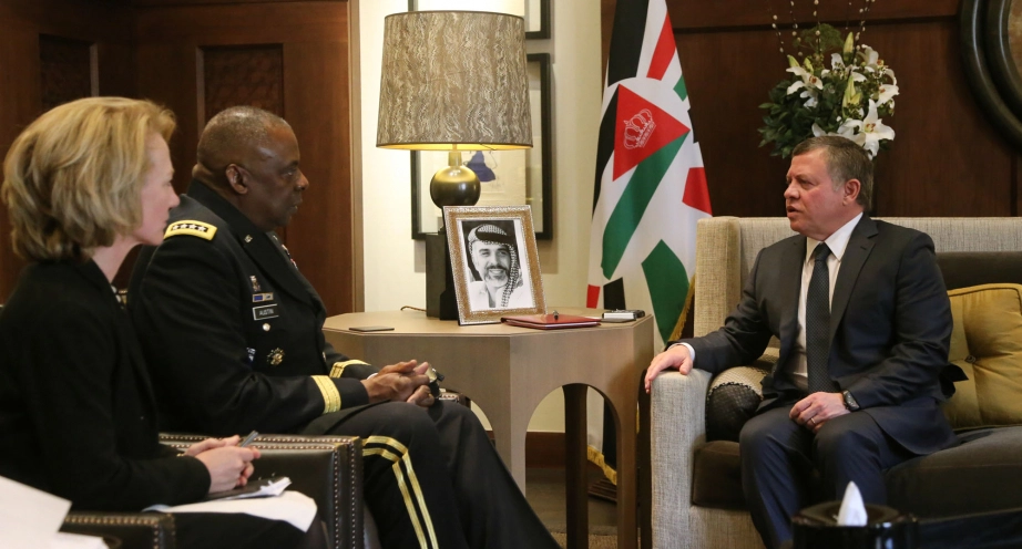 جلالة الملك عبدالله الثاني يلتقي قائد القيادة المركزية الأمريكية الجنرال لويد أوستن