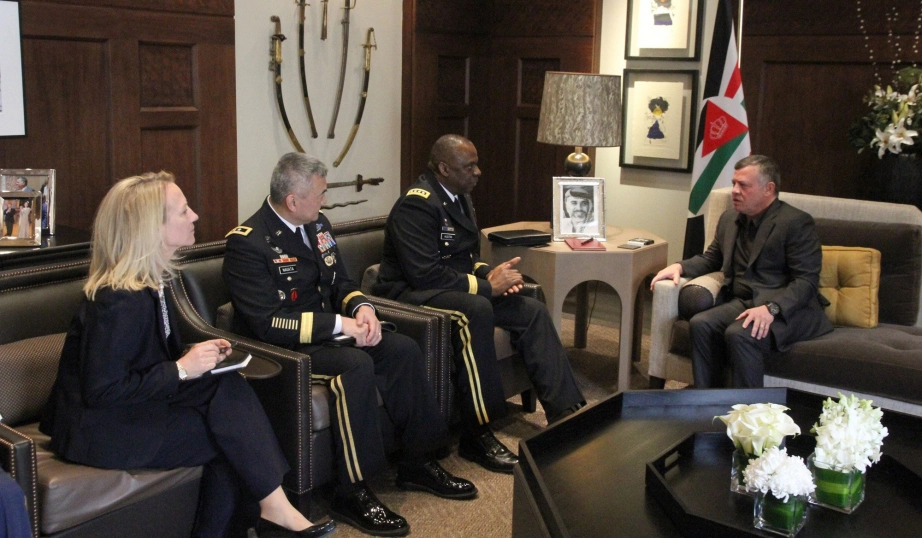 جلالة الملك عبدالله الثاني يلتقي قائد القيادة المركزية الأمريكية، الفريق أول لويد أوستن