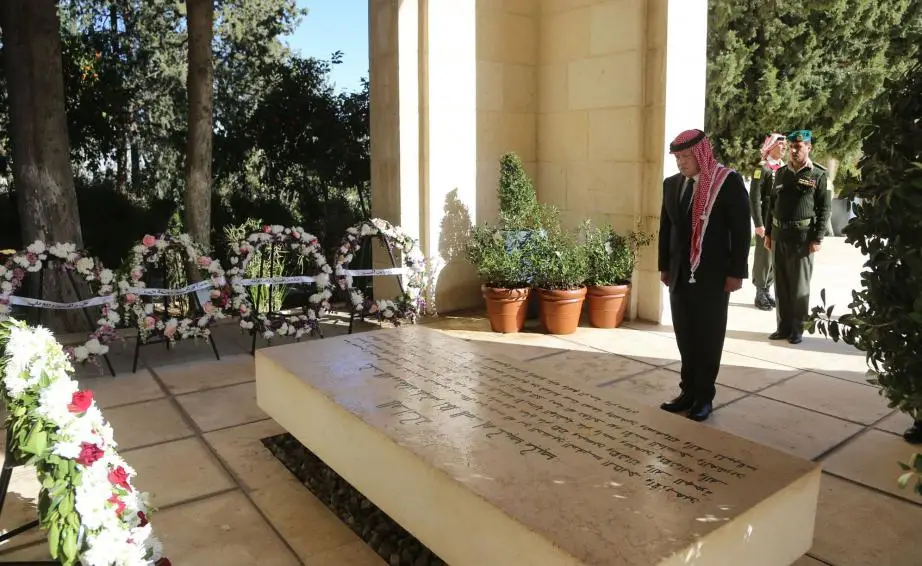 جلالة الملك عبدالله الثاني يزور ضريح المغفور له الملك الحسين طيب الله ثراه ويقرأ الفاتحة على روحه الطاهرة