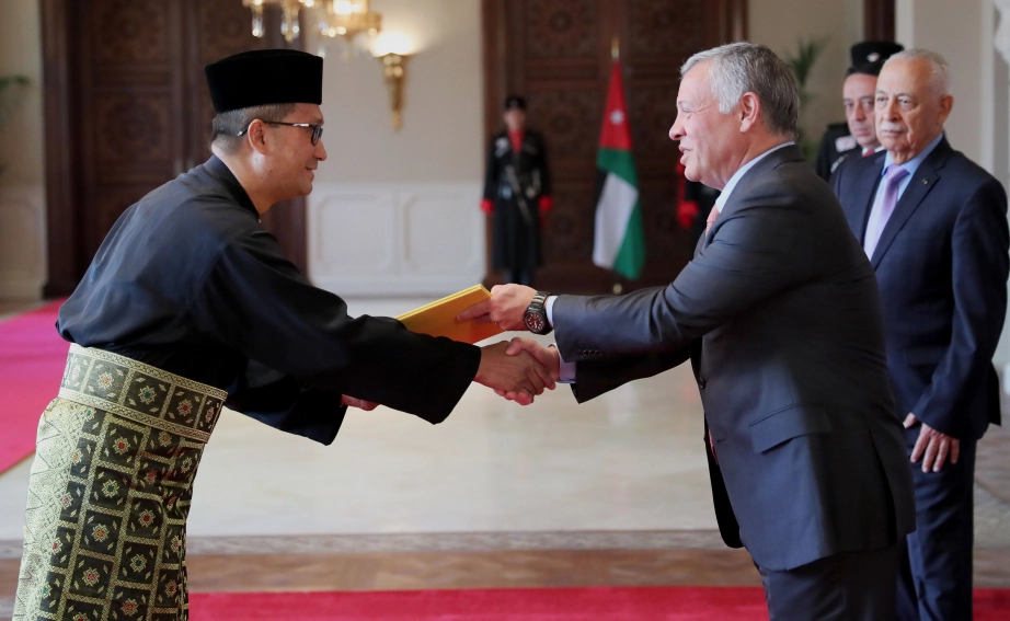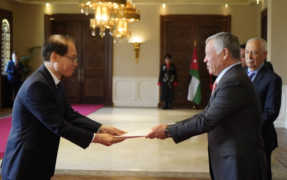 His Majesty King Abdullah II accepts the credentials of a number of newly appointed ambassadors to Jordan at Basman Palace