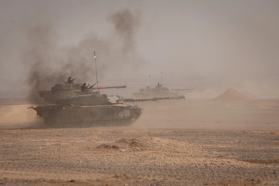 His Majesty King Abdullah II, the Supreme Commander of the Jordan Armed Forces-Arab Army, attends a tactical exercise conducted by the Second Royal Armoured Battalion of the 40th King Hussein bin Talal Royal Armoured Brigade