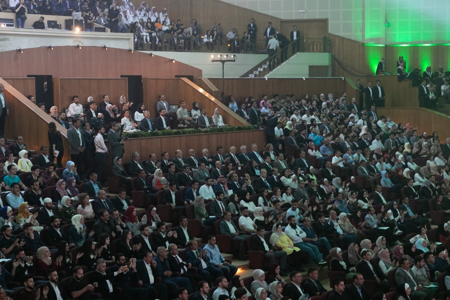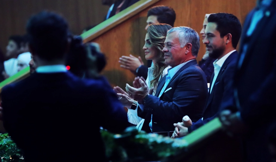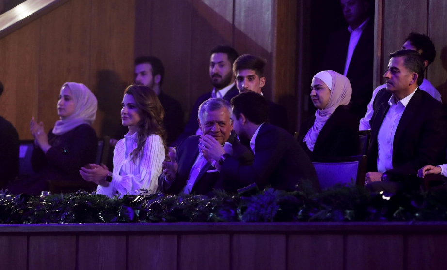 His Majesty, accompanied by Her Majesty and HRH Crown Prince, attends a ceremony marking the 20th Anniversary of the Accession to the Throne at the Cultural Palace hosted by a number of Jordanian universities
