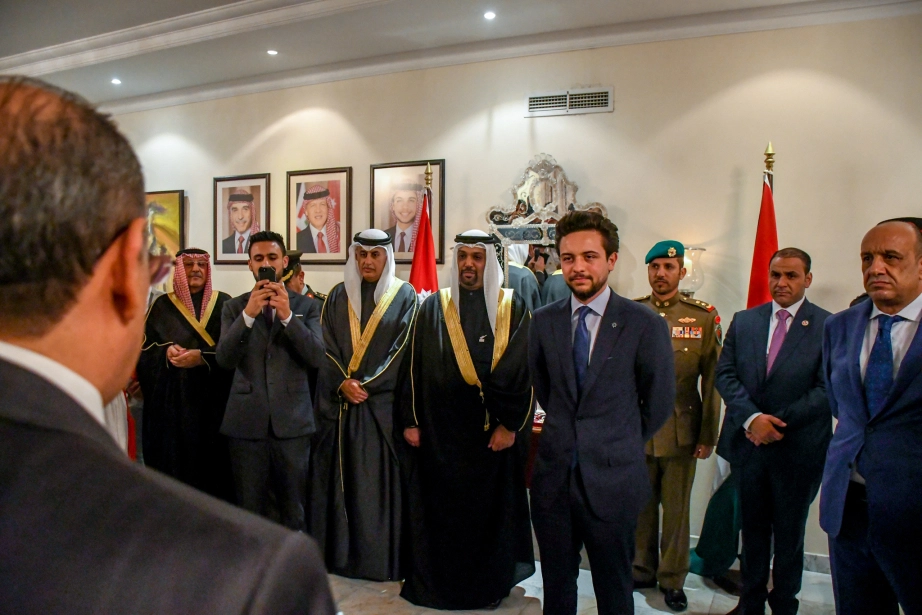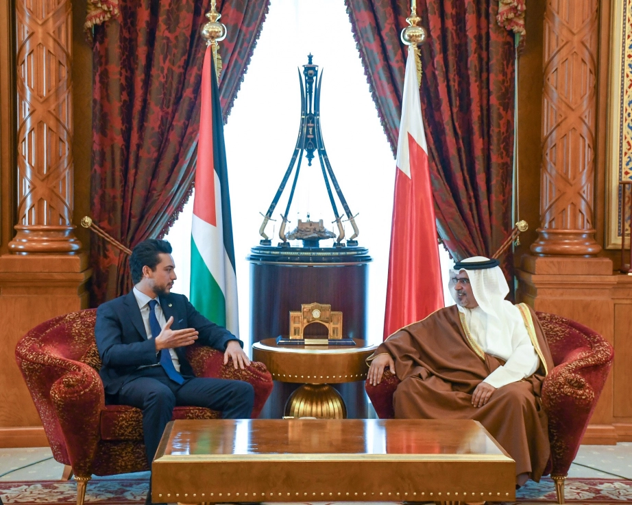 His Royal Highness Crown Prince Al Hussein bin Abdullah II meets with Prince Salman bin Hamad Al Khalifa, Crown Prince, Deputy Supreme Commander and First Deputy Prime Minister of Bahrain, to discuss bilateral ties and means to advance them