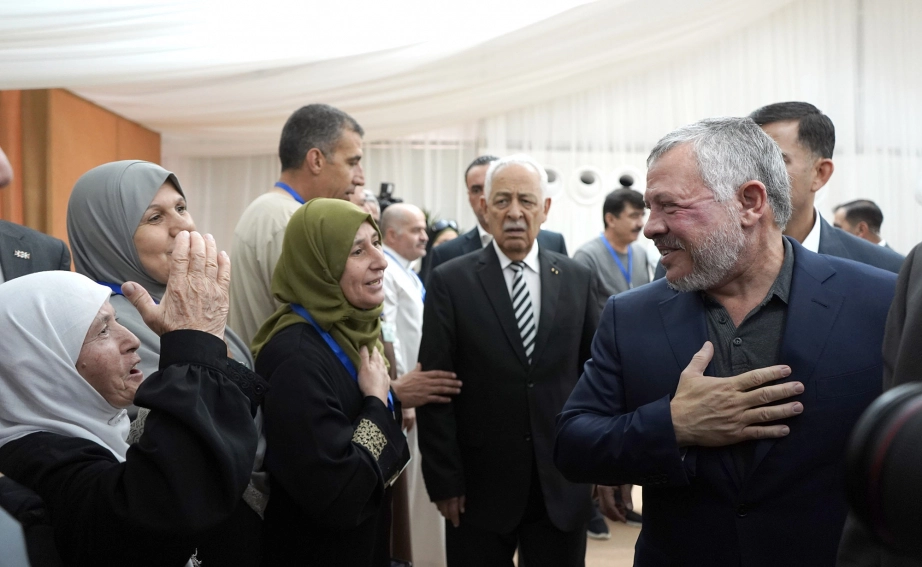 His Majesty King Abdullah II bids farewell to the families of martyrs leaving to perform Hajj, the greater Muslim pilgrimage to Mecca