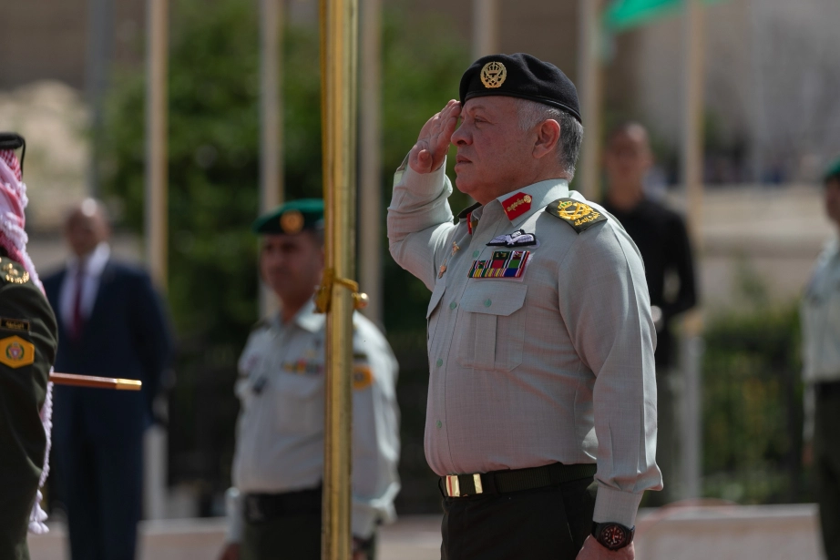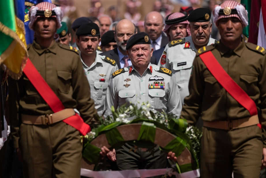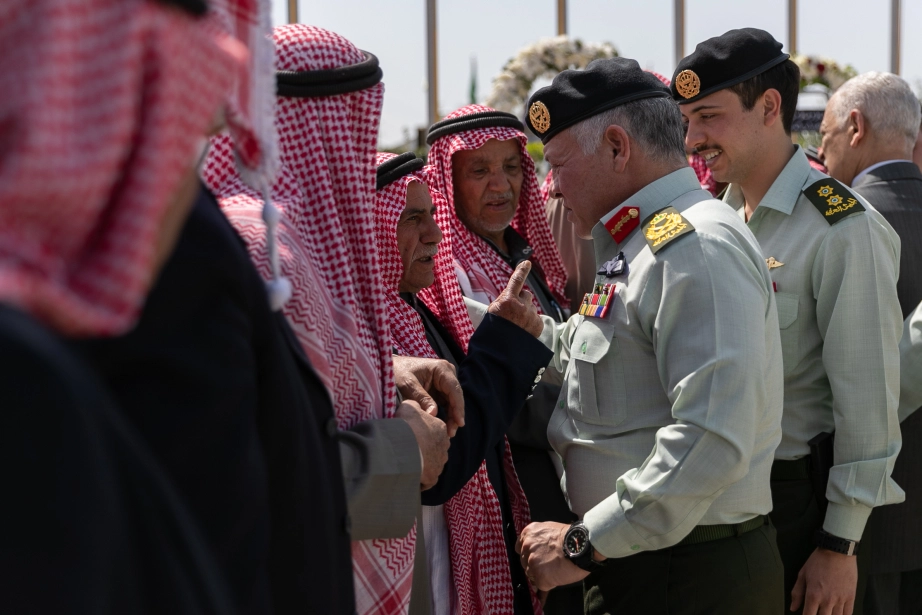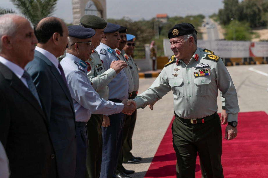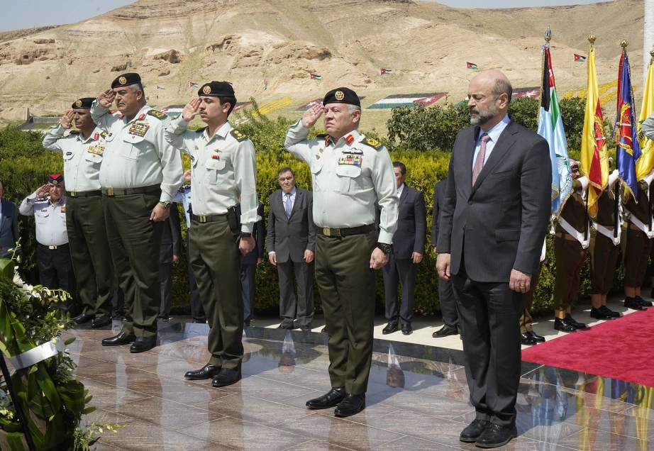 His Majesty King Abdullah II, the Supreme Commander of the Jordan Armed Forces-Arab Army, accompanied by His Royal Highness Crown Prince Al Hussein bin Abdullah II, attends a ceremony marking the 51st anniversary of Al Karamah Battle