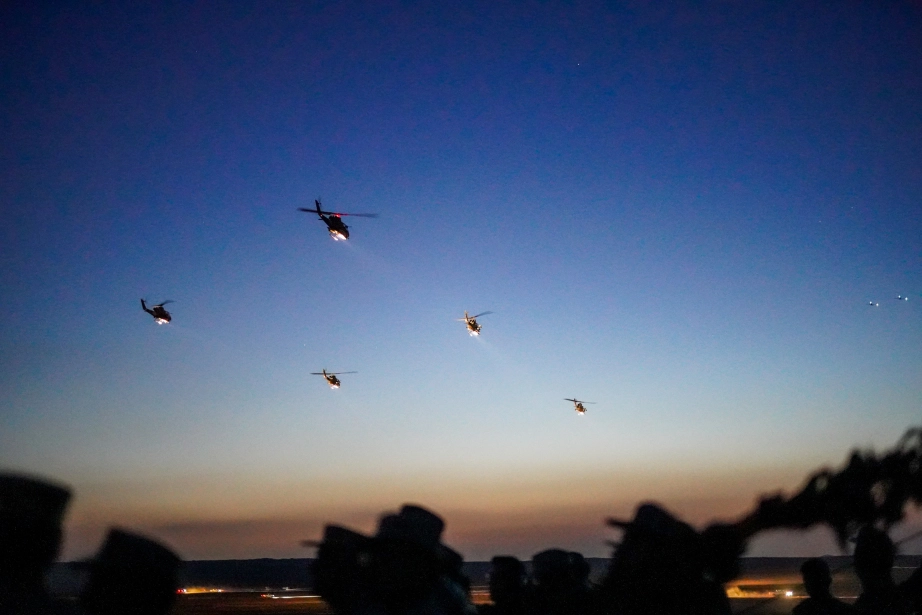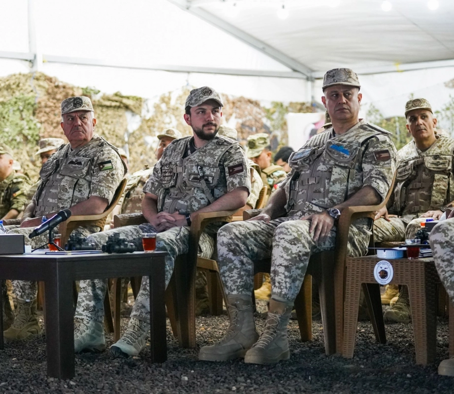 Deputising for His Majesty King Abdullah II, the Supreme Commander of the Jordan Armed Forces-Arab Army, His Royal Highness Crown Prince Al Hussein attends a night military drill, conducted as part of the graduation of the 12th advanced tactical aviation