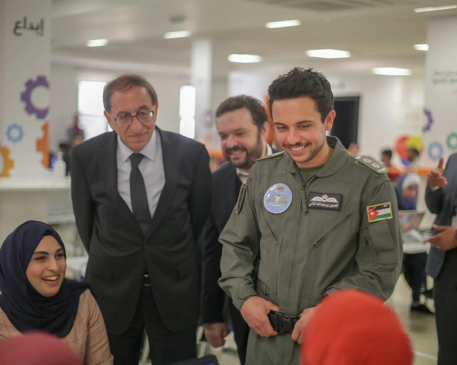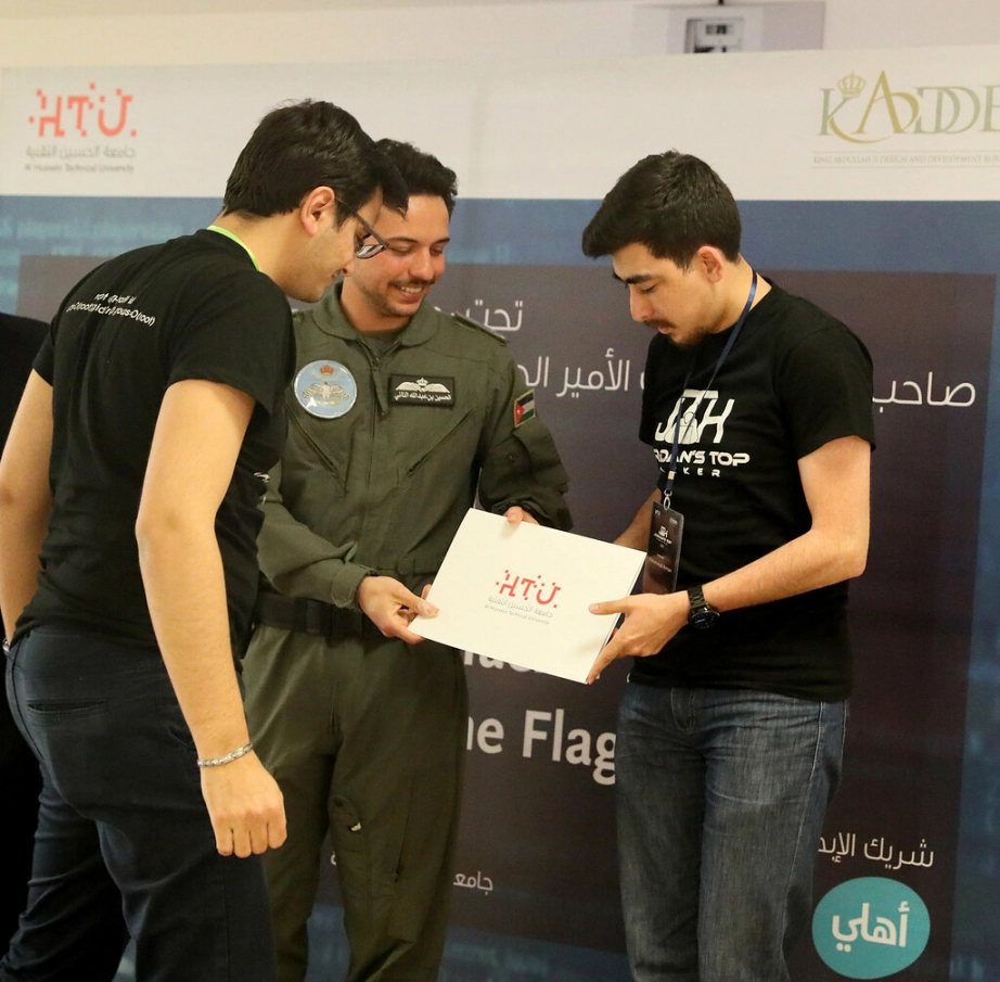 His Royal Highness Crown Prince Al Hussein bin Abdullah II attends part of the Cyber Security Hackathon competition at Al Hussein Technical University and honours the winners