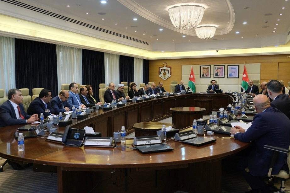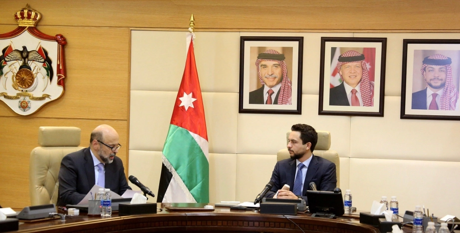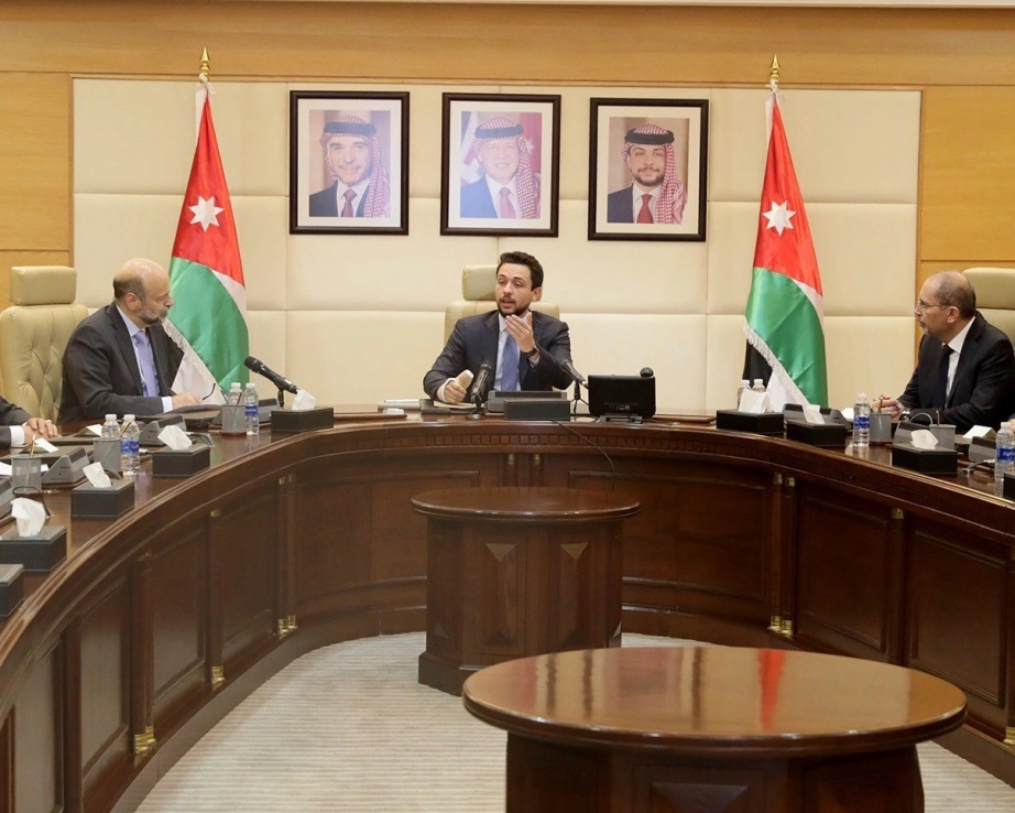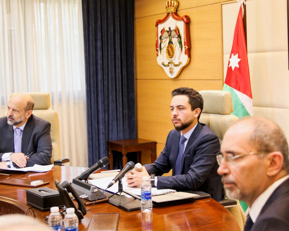 His Royal Highness Crown Prince Al Hussein bin Abdullah II, the Regent, chairs part of a Cabinet meeting to follow up on the government's plans to implement Royal directives on a number of projects, and stresses the need for a comprehensive framework and