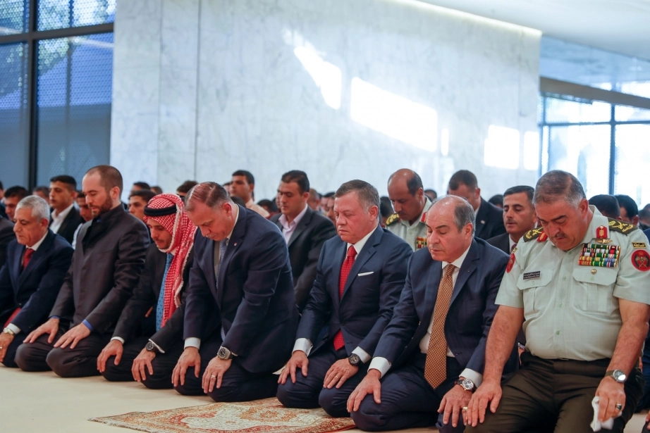 His Majesty King Abdullah II joins worshippers in performing Eid Al Fitr prayer at Al Hashemiya Mosque in Amman