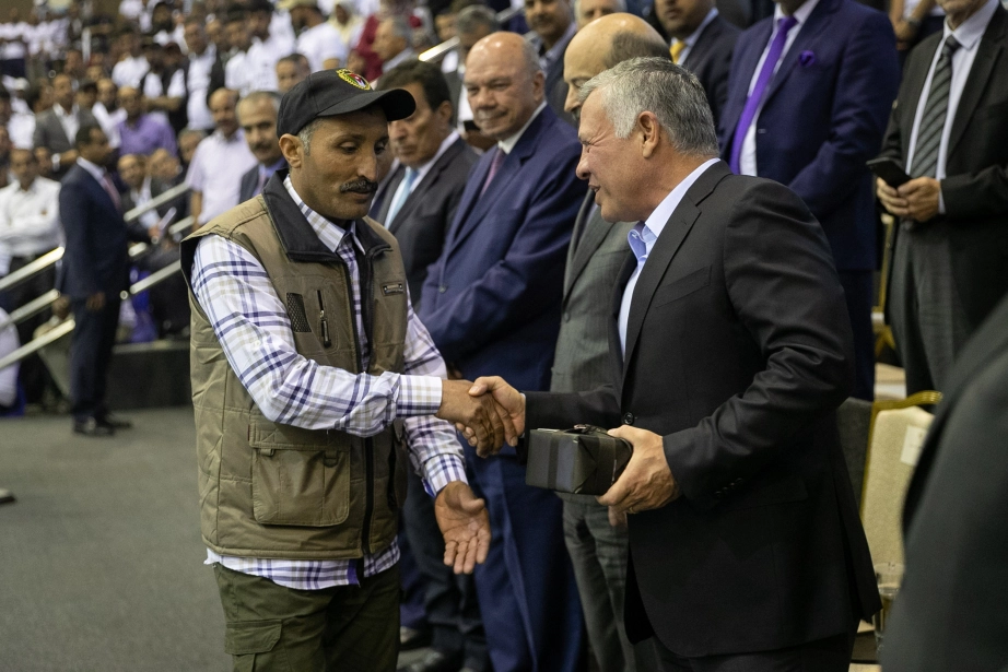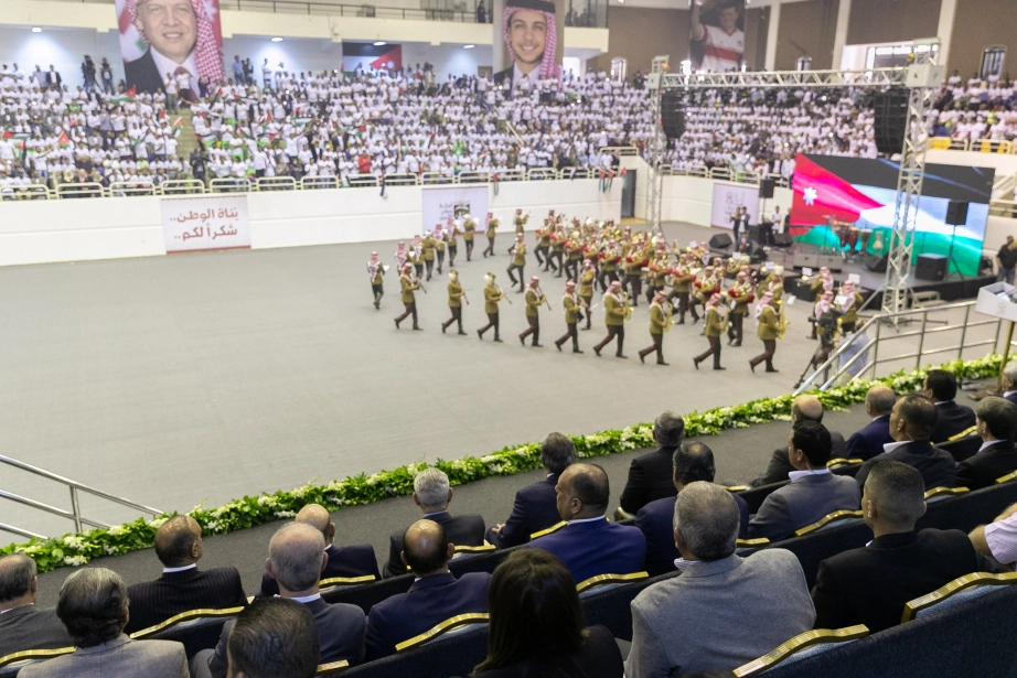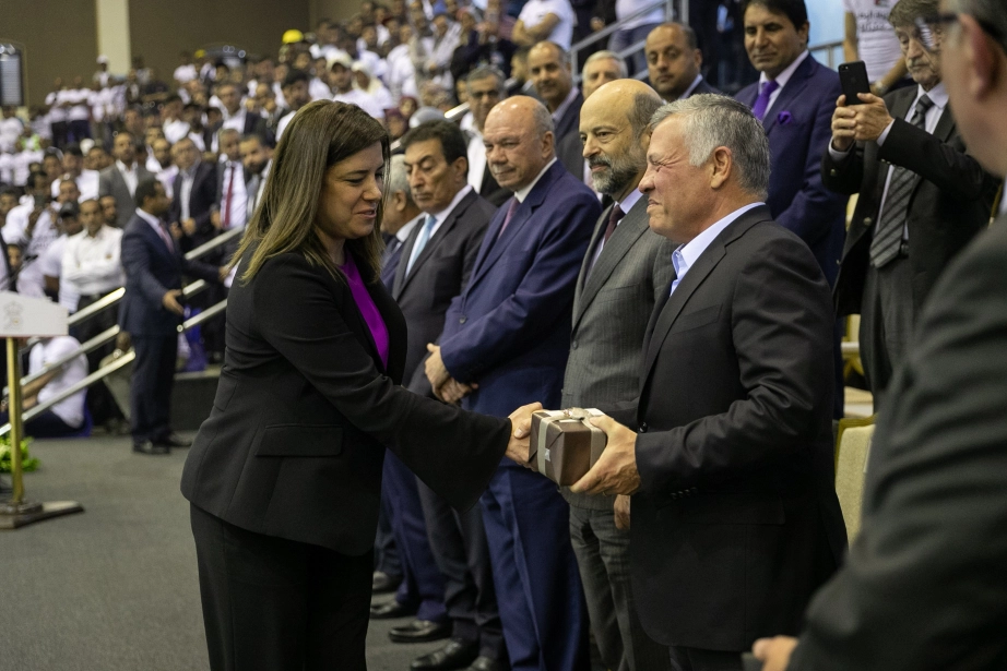 His Majesty King Abdullah II attends the Greater Amman Municipality's celebration on Labour Day, attended by 3,000 Jordanians, and honours a group of public and private sector workers from around Jordan