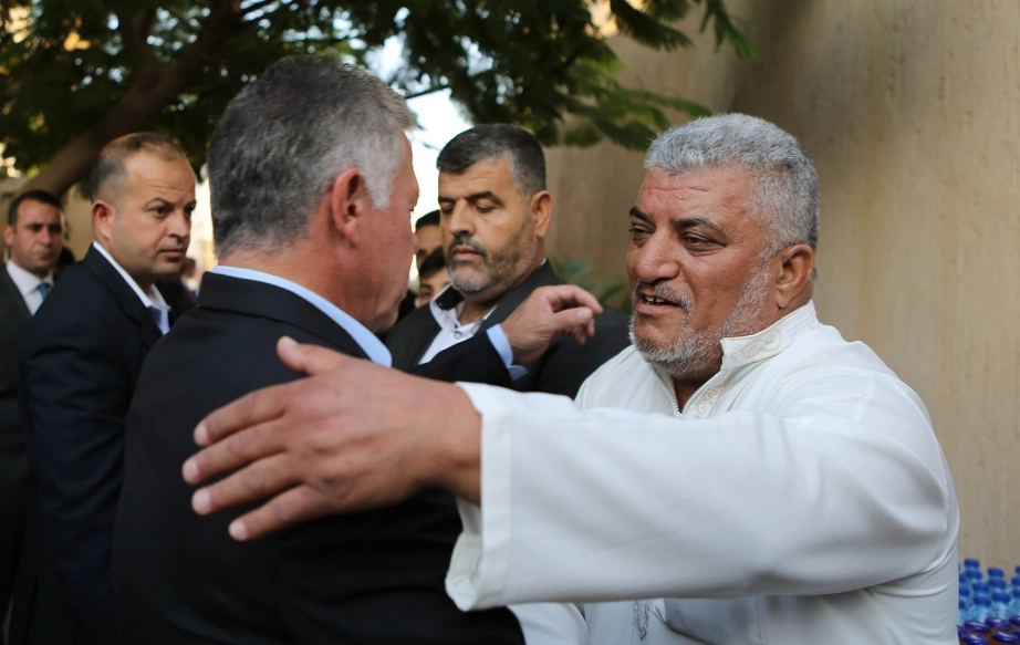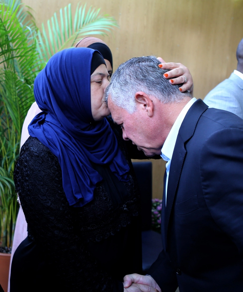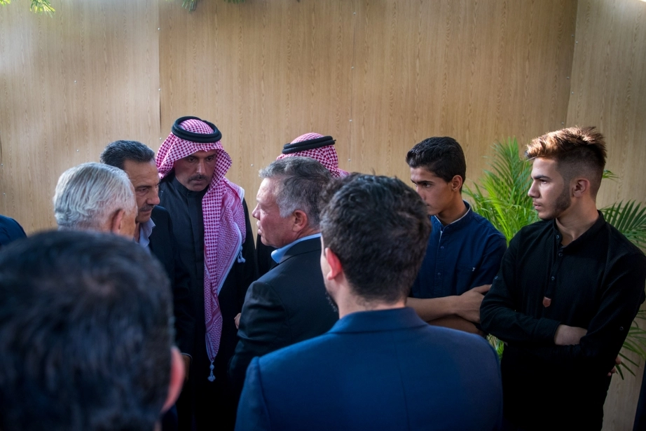 His Majesty King Abdullah II, accompanied by HRH Crown Prince Al Hussein bin Abdullah II, meets with the families of Fuheis and Salt martyrs