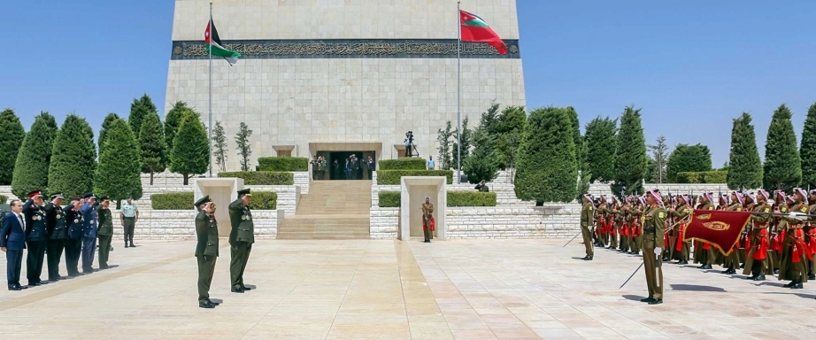 His Majesty King Abdullah II, the Supreme Commander of the Jordan Armed Forces-Arab Army, lays a wreath at the Unknown Soldier Monument at the Martyr’s Memorial