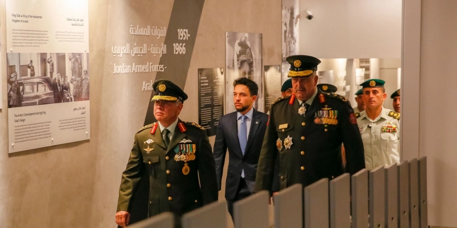 His Majesty King Abdullah II, the Supreme Commander of the Jordan Armed Forces-Arab Army, accompanied by HRH Crown Prince Al Hussein bin Abdullah II, tours the Martyr’s Memorial complex