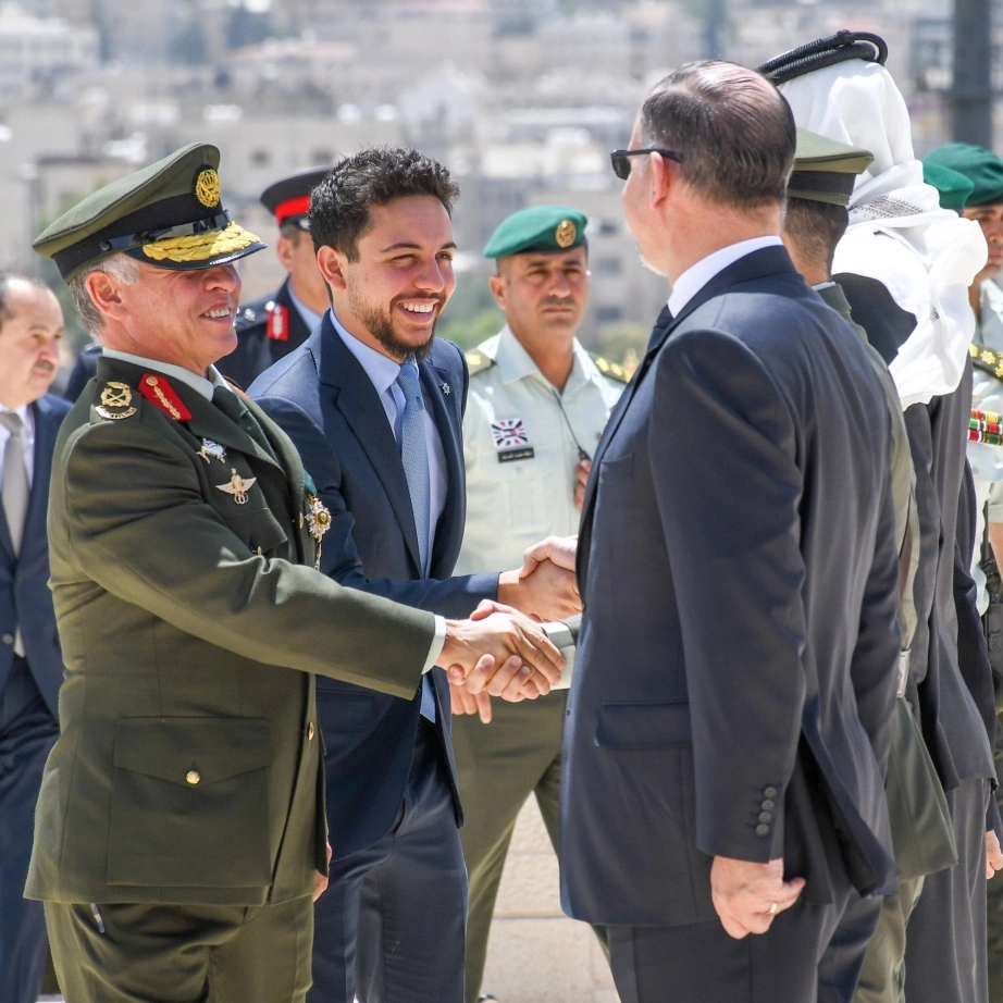 His Majesty King Abdullah II accompanied by HRH Crown Prince Al Hussein bin Abdullah II, arrives at the Martyr’s Memorial to attend the JAF celebration marking Accession to the Throne Day, the Great Arab Revolt anniversary, and Army Day