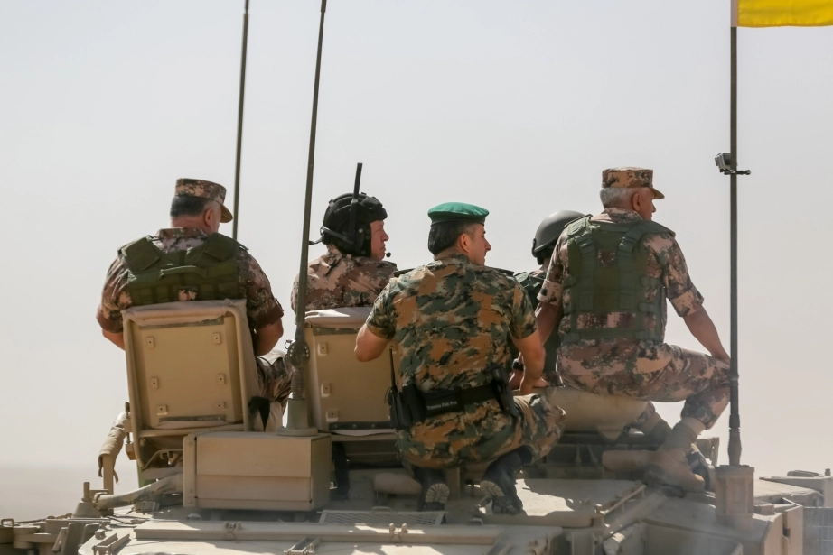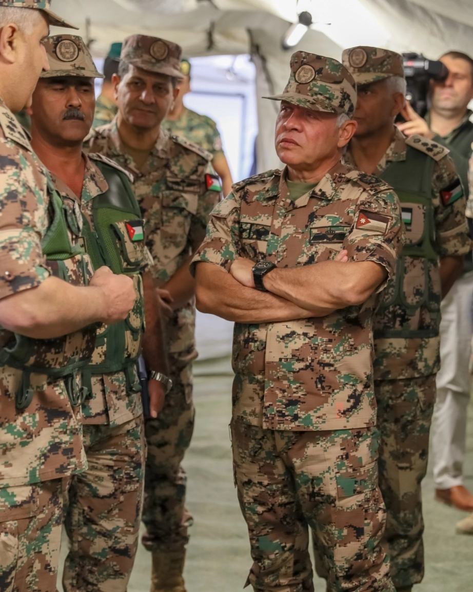 His Majesty King Abdullah II, the Supreme Commander of the Jordan Armed Forces-Arab Army, attends a tactical exercise conducted by the 60th Prince El Hassan bin Talal Royal Armoured Brigade and participates in part of it