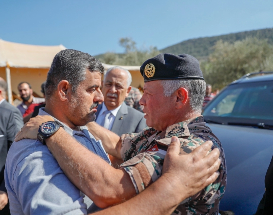 His Majesty King Abdullah II, the Supreme Commander of the Jordan Armed Forces-Arab Army, extends condolences to the family of martyr Warrant Officer Ali Qoqazeh in Jerash Governorate’s Souf area