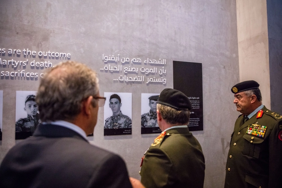 His Majesty King Abdullah II, the Supreme Commander of the Jordan Armed Forces-Arab Army, tours the renovated Martyr’s Memorial complex