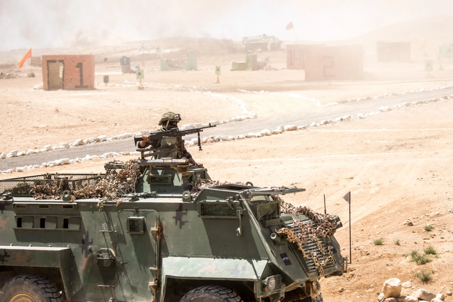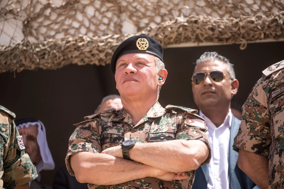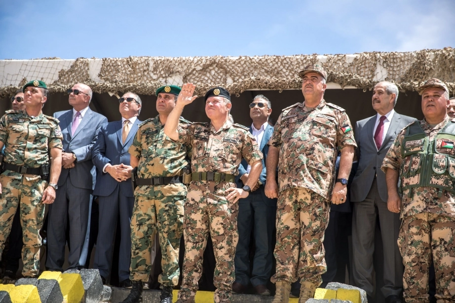 His Majesty King Abdullah II, the Supreme Commander of the Jordan Armed Forces-Arab Army, attends a military exercise for King Hussein Bin Ali Brigade in the occasion of Independence Day
