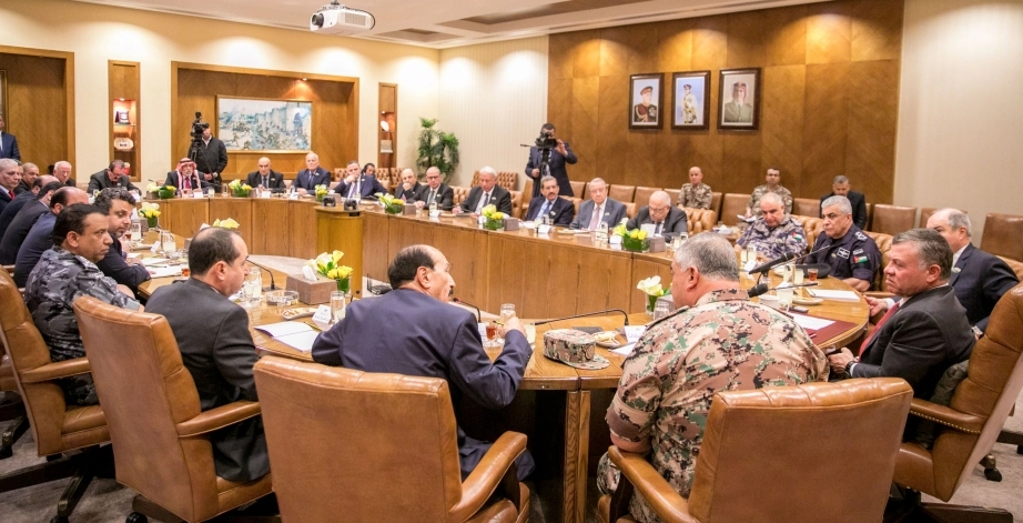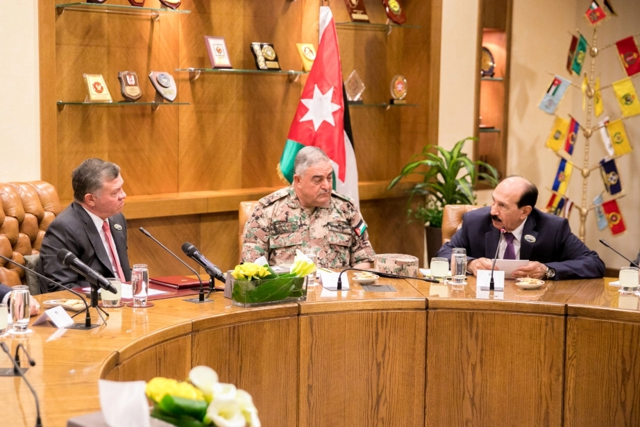 His Majesty King Abdullah II meets with the chair and members of the higher and executive boards of the Economic and Social Association of Retired Servicemen and Veterans