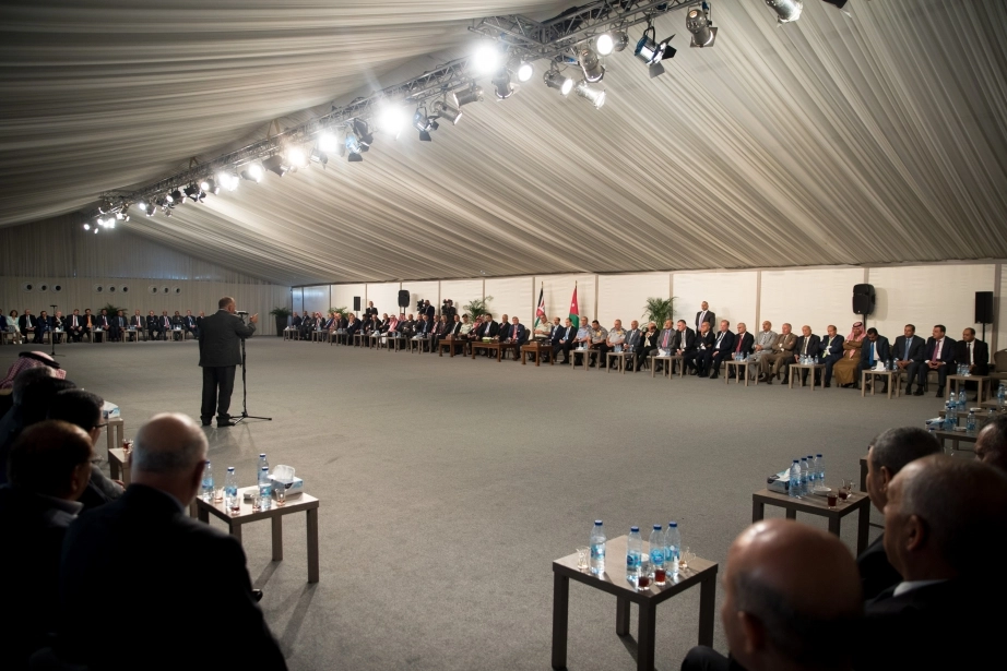His Majesty King Abdullah II meets with retired servicemen and veterans at the Royal Hashemite Court