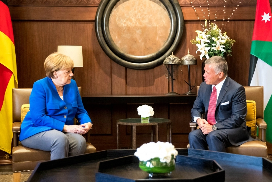 His Majesty King Abdullah II receives German Chancellor Angela Merkel at Al Husseiniya Palace