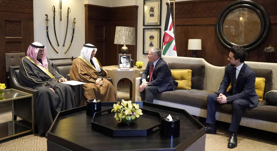 His Majesty King Abdullah II receives a letter from Emir of Kuwait Sheikh Sabah Al Ahmad Al Jaber Al Sabah, which was delivered by Prime Minister of Kuwait Sheikh Jaber Al Mubarak Al Hamad Al Sabah