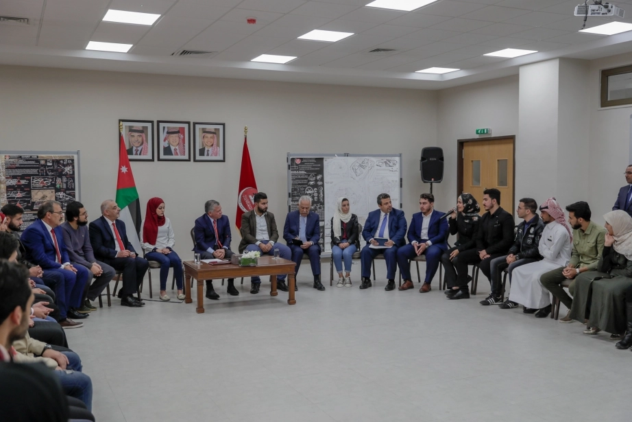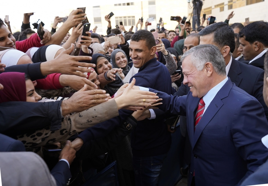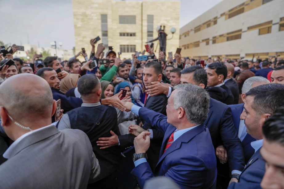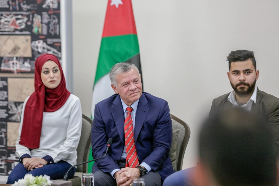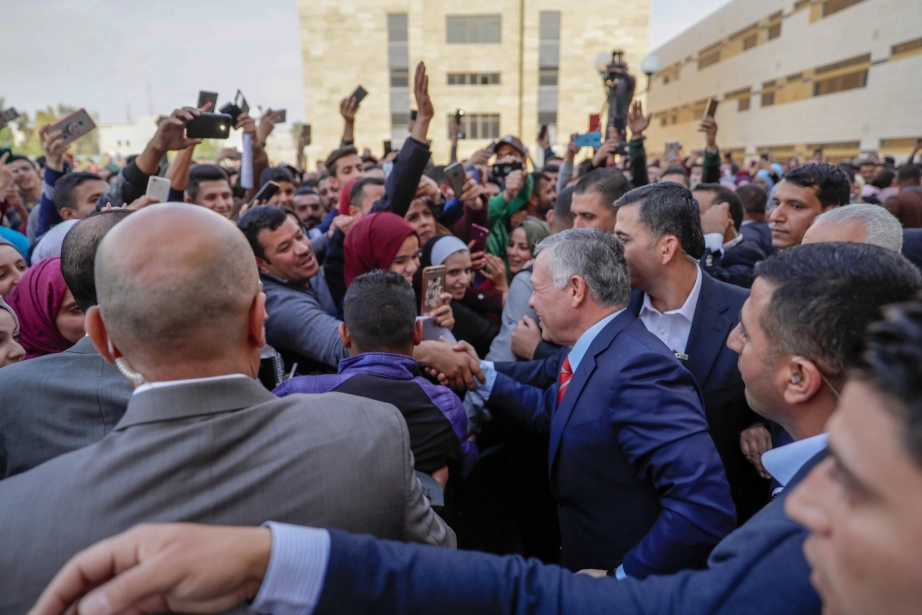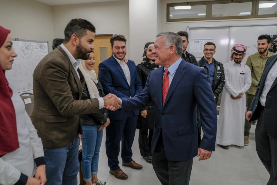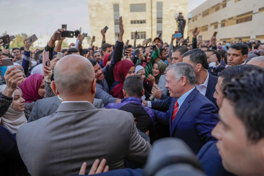 His Majesty King Abdullah II speaks to a group of students at the Hashemite University