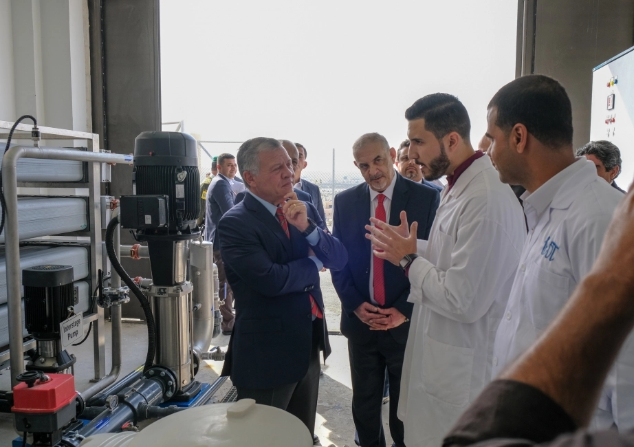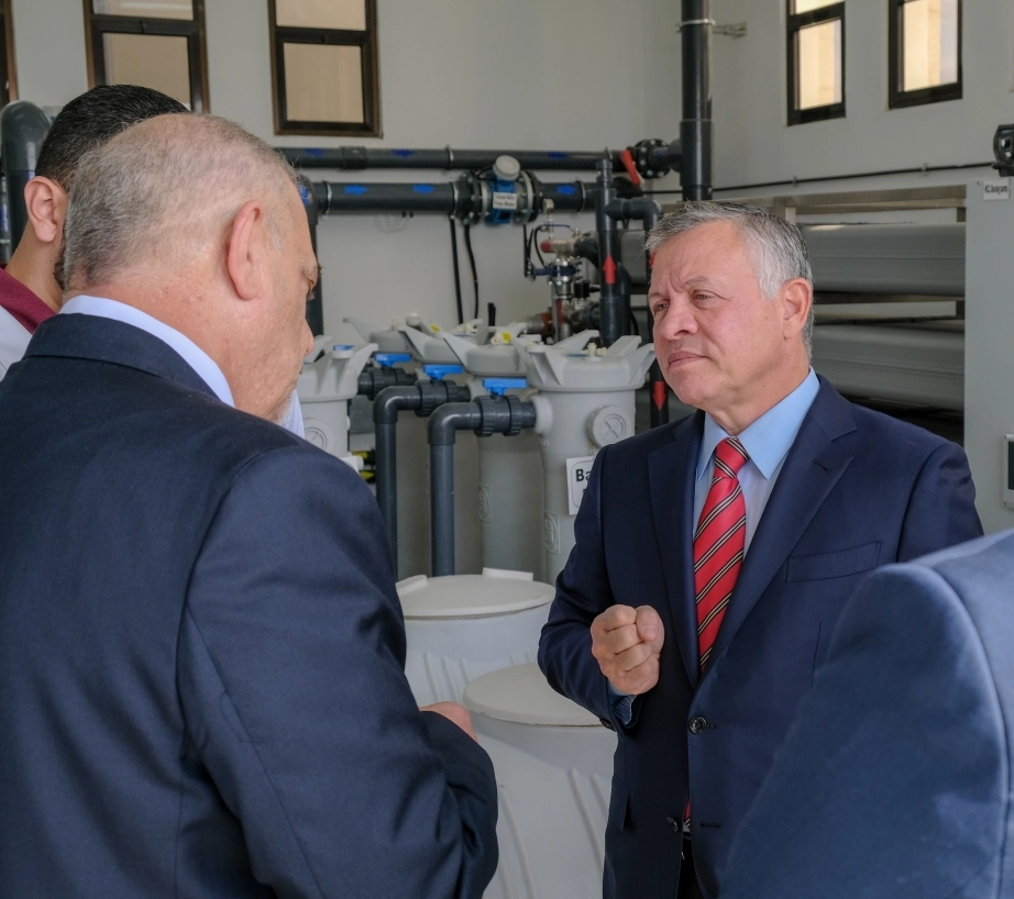 His Majesty King Abdullah II visits a solar-powered water desalination plant established by the Hashemite University and which produces 650 cubic metres of water per day