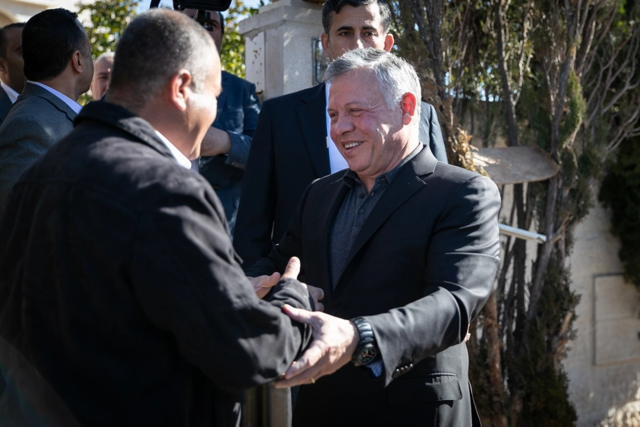 His Majesty King Abdullah II pays a surprise visit to retired Lt. Col. Ghassan Zawahreh, who was injured in the line of duty, & checks on his condition
