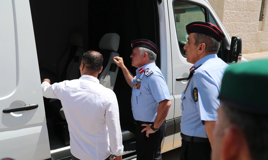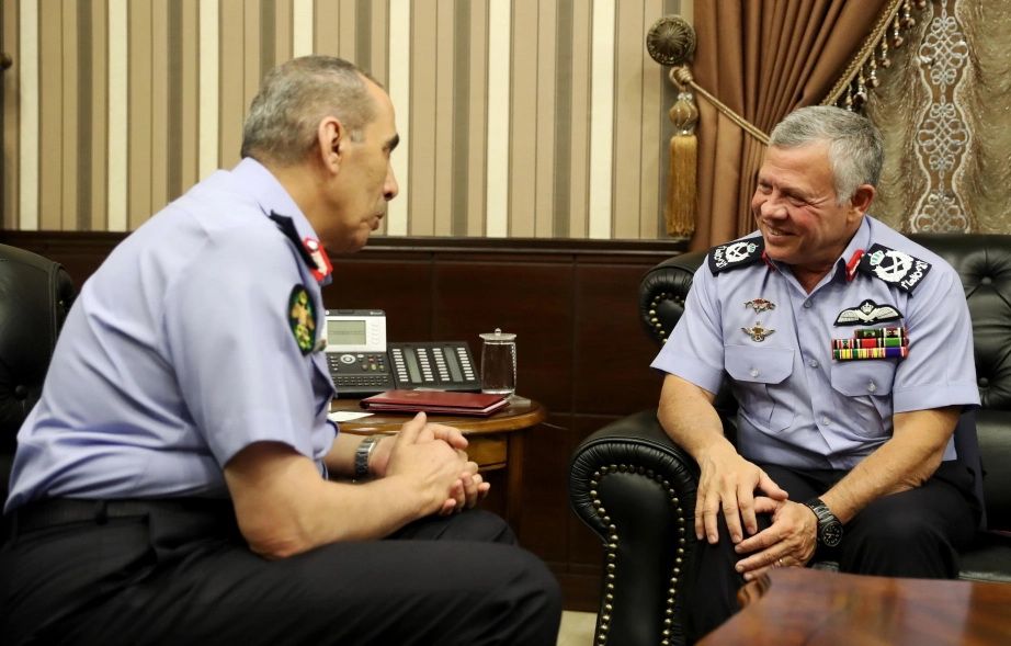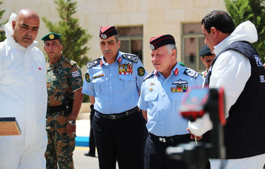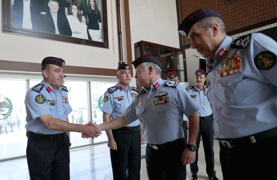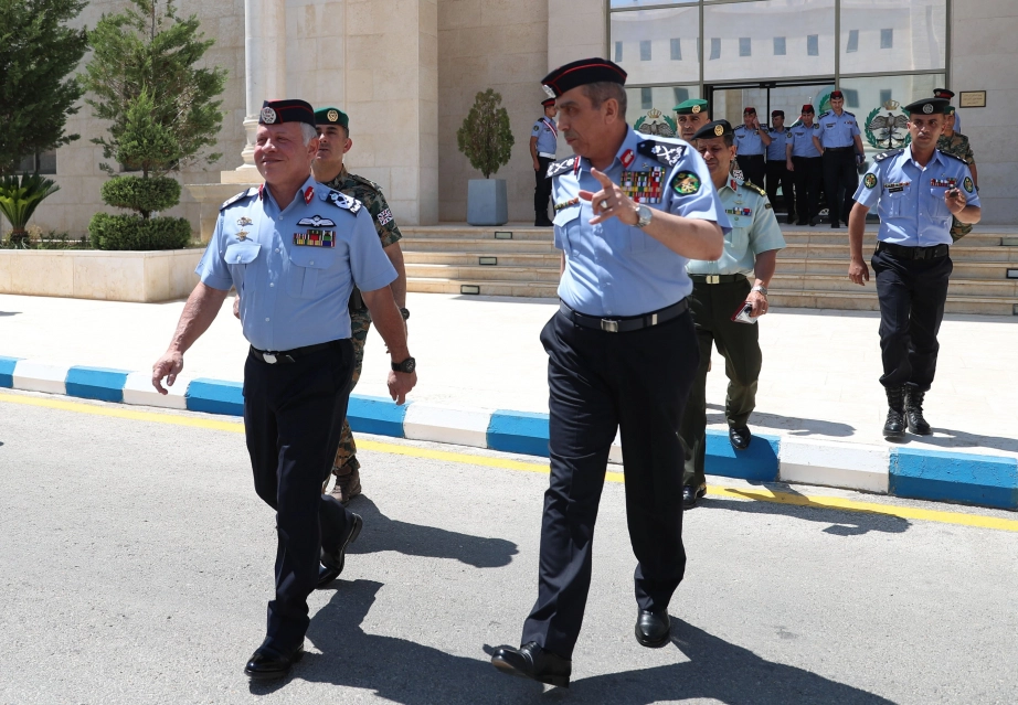 His Majesty King Abdullah II, the Supreme Commander of the Jordan Armed Forces-Arab Army, visits the Public Security Directorate and meets with a group of officers