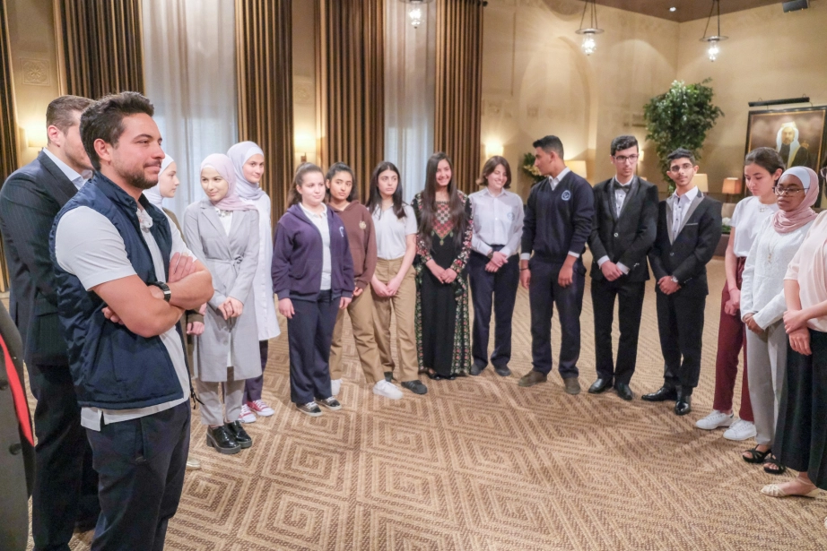 His Royal Highness Crown Prince Al Hussein bin Abdullah ll meets Jordanian students who have qualified to the 2019 Intel International Competition, which will take place in the United States