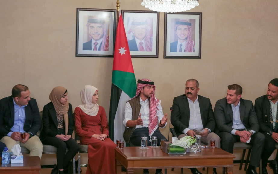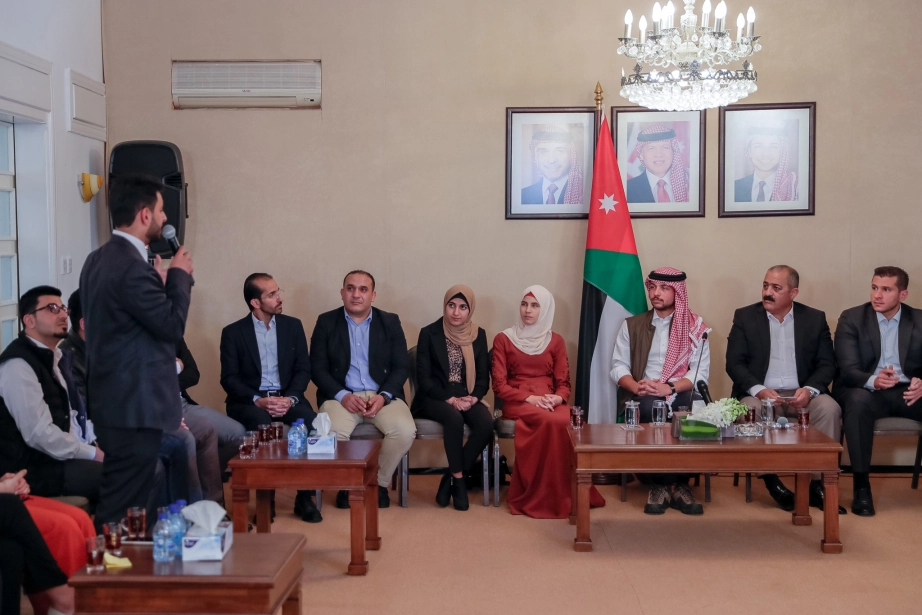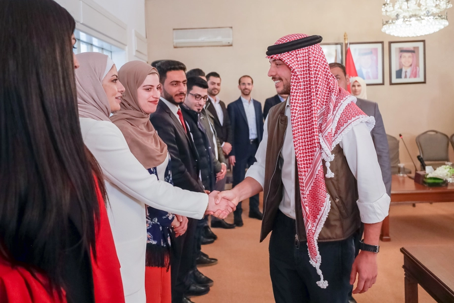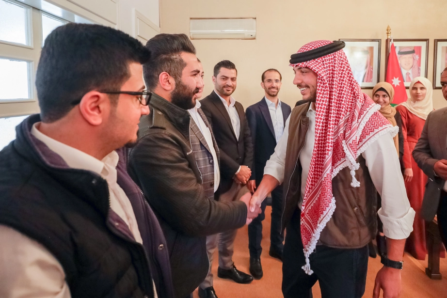 His Royal Highness Crown Prince Al Hussein bin Abdullah II meets with young people in Irbid Governorate who have made an impact on their communities through innovative initiatives and entrepreneurial projects