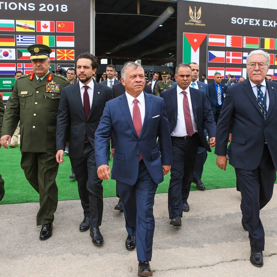 His Majesty King Abdullah II, the Supreme Commander of the Jordan Armed Forces-Arab Army, accompanied by HRH Crown Prince Al Hussein bin Abdullah II, inaugurates the Special Operations Forces Exhibition SOFEX 2018