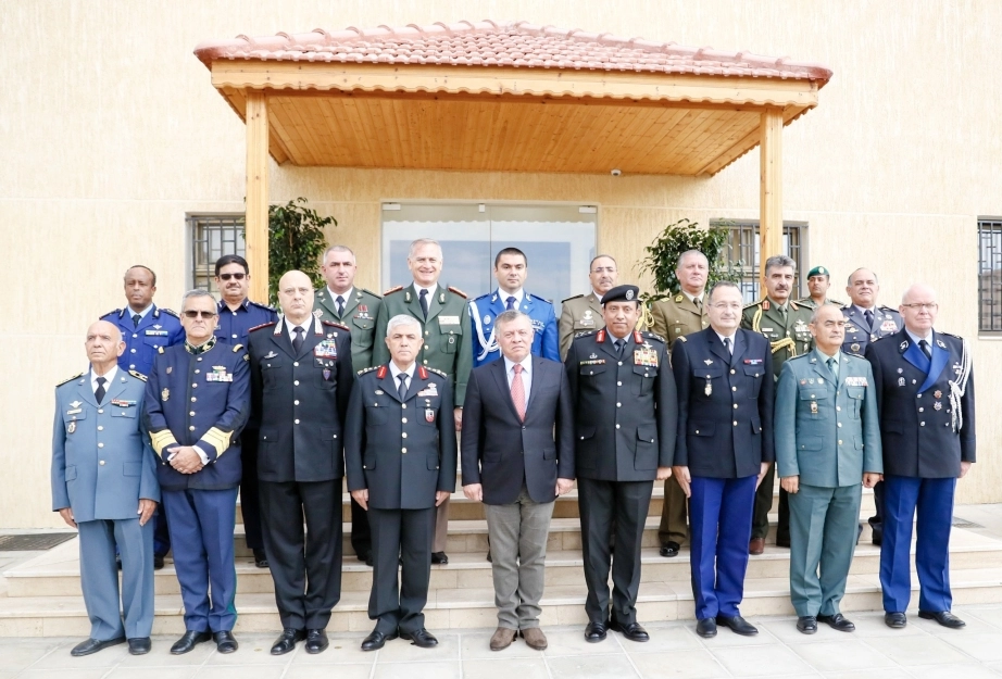 His Majesty King Abdullah II, the Supreme Commander of the Jordan Armed Forces-Arab Army, meets delegates attending the Association of European and Mediterranean Gendarmeries and Police Forces with Military Status’ senior council meeting