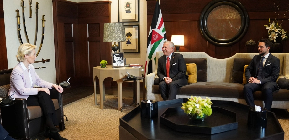 His Majesty King Abdullah II, accompanied by His Royal Highness Crown Prince Al Hussein, meets with European Commission President Ursula von der Leyen