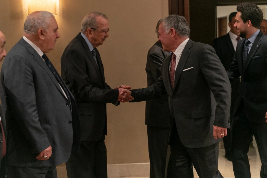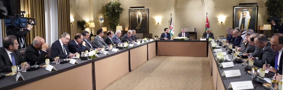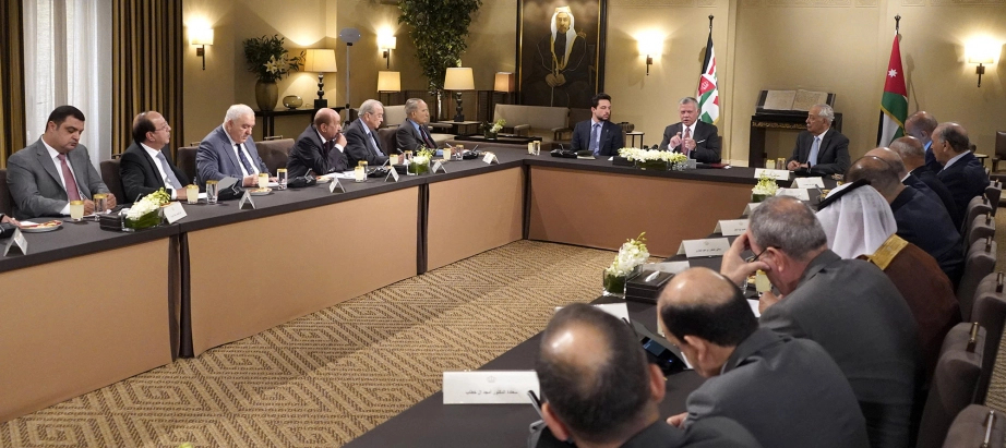 His Majesty King Abdullah II, with HRH Crown Prince Al Hussein bin Abdullah II, meets with local political and media figures
