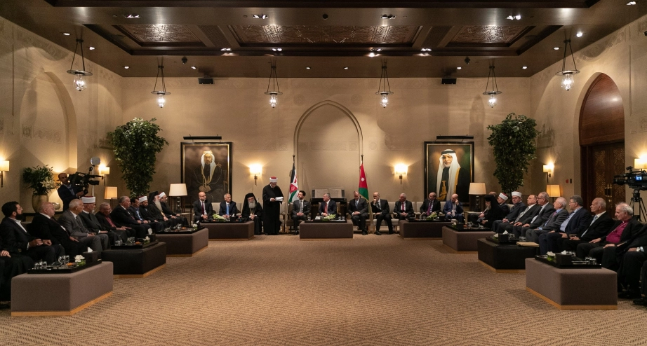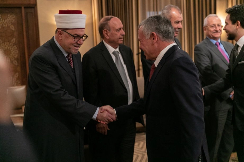 His Majesty King Abdullah II, accompanied by His Royal Highness Crown Prince Al Hussein bin Abdullah II, meets with members of the Jerusalem Awqaf Council and Jerusalem Church, Jerusalemites and representatives of Arab Israelis over iftar