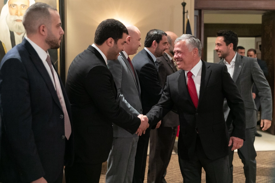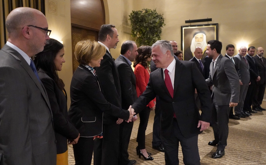 His Majesty King Abdullah II, accompanied by His Royal Highness Crown Prince Al Hussein bin Abdullah II, meets with young Jordanian entrepreneurs and representatives of institutions that support entrepreneurship