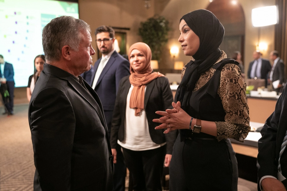 His Majesty King Abdullah II meets with young Jordanian entrepreneurs to discuss the importance of coming up with solutions and proposals to boost the entrepreneurship sector