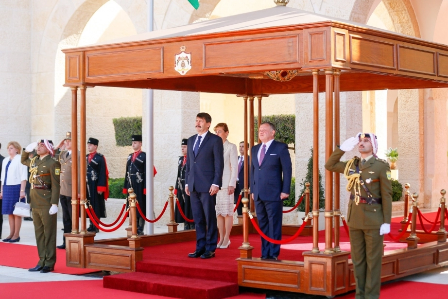 His Majesty King Abdullah II receives Hungarian President János Áder and his spouse at Al Husseiniya Palace
